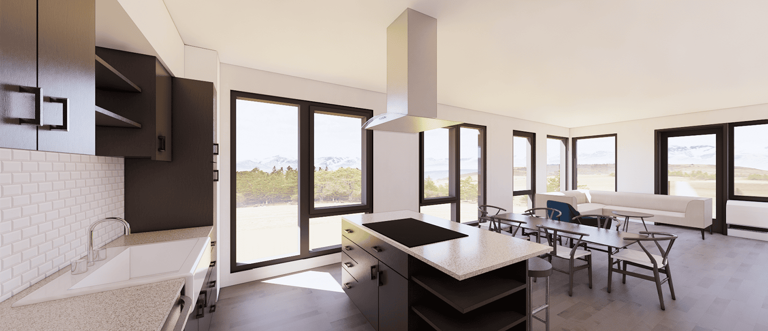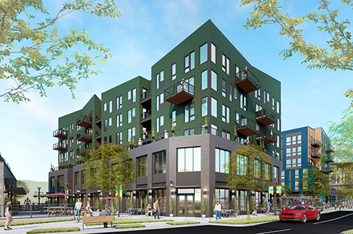 The ground floor includes the typical retail, support spaces and residential lobby like the other buildings in Hyas Point Phase 1. Sitka is the only building that integrates a floor of about 13K sf of office space. Above all are residential units. With the building’s layout we have opportunities for large decks at the second floor units for the occupants to enjoy their view in their own private space.