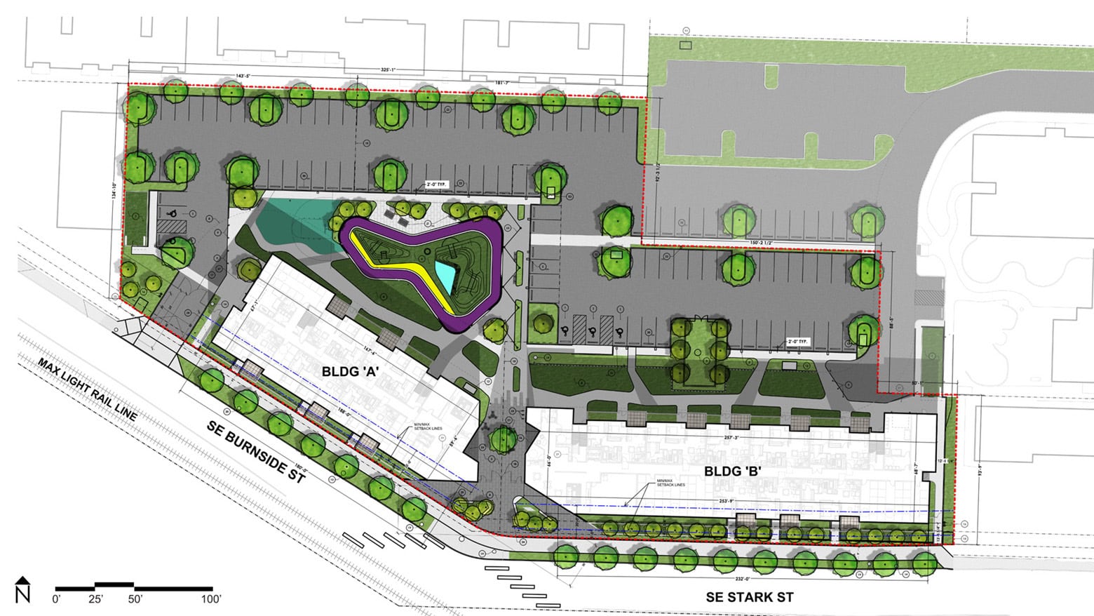 -4 Stories-106,865 Square Feet-79 Residential Units-95 Parking Stalls-Construction Type VALocated at the corner of Burnside and Stark Street, Sunrise project brings much needed housing to Rockwood. A plaza at the intersection focuses the energy of the site to the primary pedestrian path. This plaza is framed by the building amenities, such as community and fitness rooms. The rest of the buildings are residential units that are focused on families. The units are typically two- and three-bedrooms units. A much-needed housing option in this market. Children play areas and resident courtyards provide the residents area to relax and connect with their community.